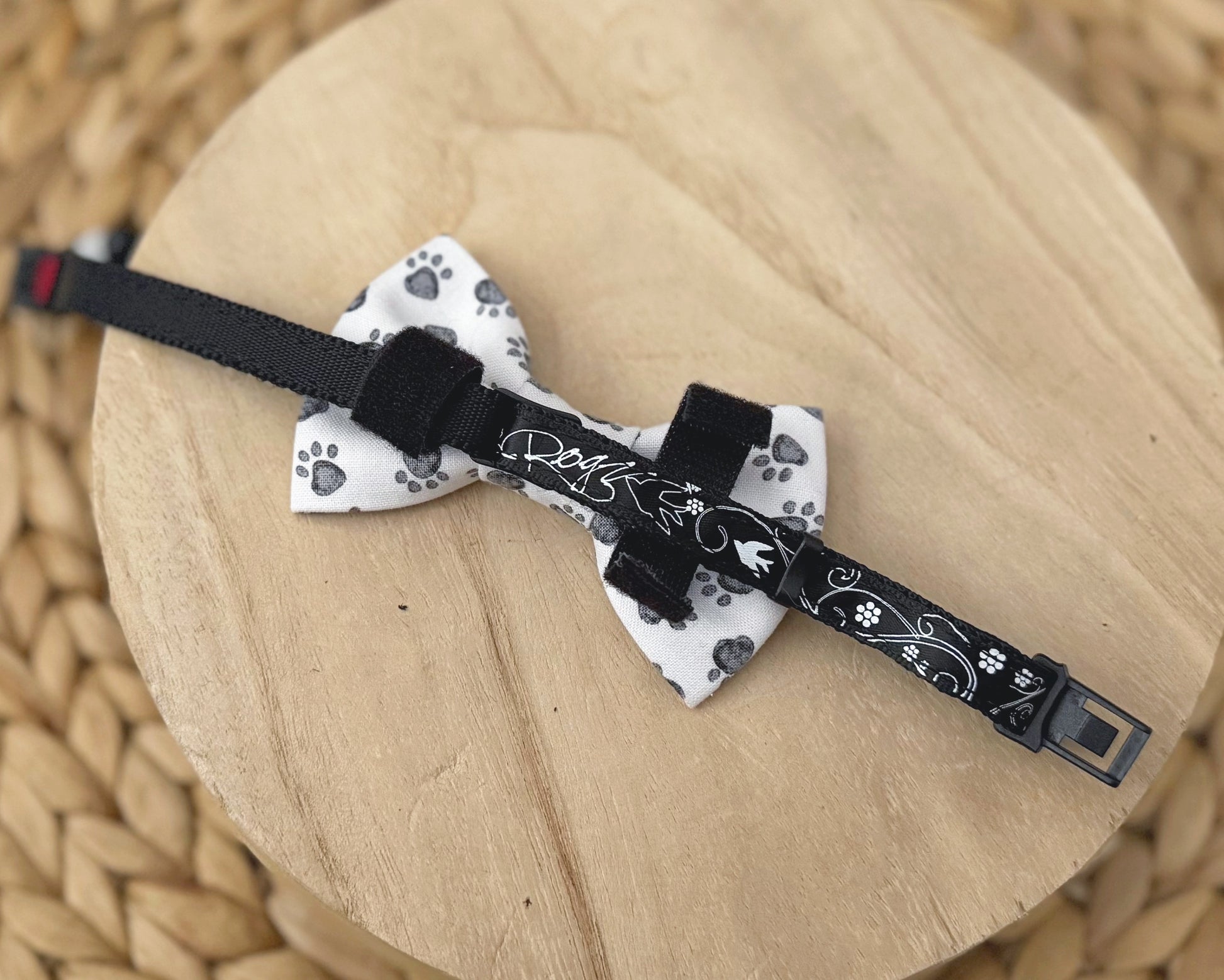 - Two velcro straps are located on the backside allowing to easily put on and take off your pets collar